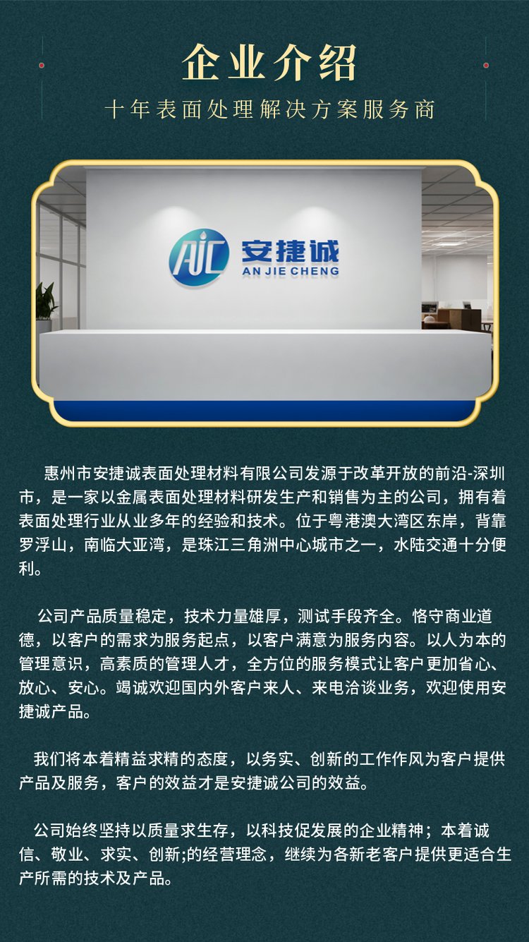 商铺名称:惠州市安捷诚表面处理材料有限公司