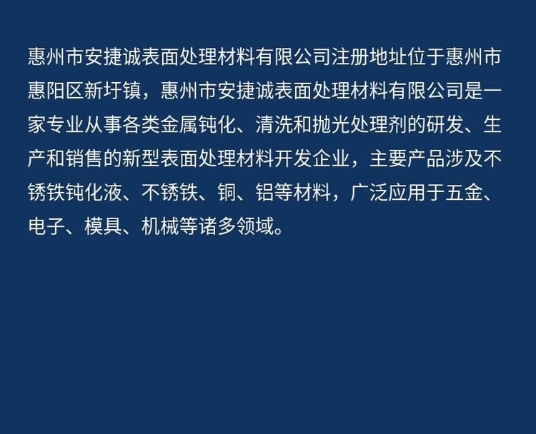 商铺名称:惠州市安捷诚表面处理材料有限公司
