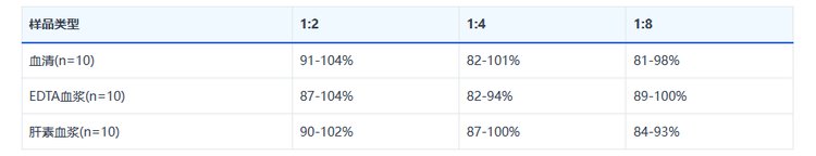 回收率:将一定含量的IL-6加入样本中,并通过将测量值与样品中IL-6的预期量进行比较来计算回收率。