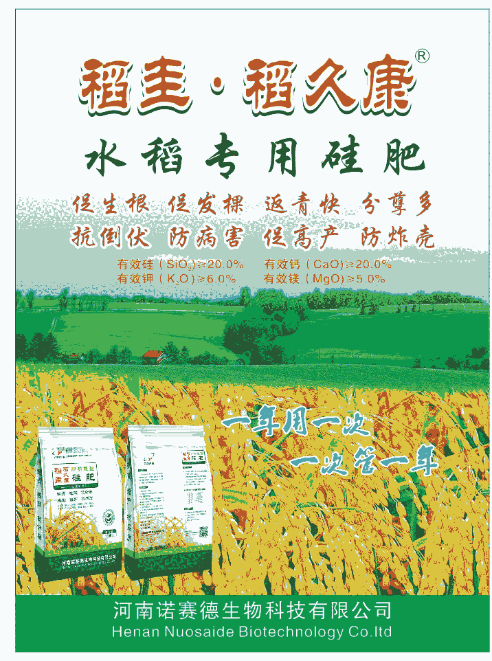 本产品富含硅、钙、镁、等多种矿物质中微量元素及聚谷氨酸、腐殖酸、氨基酸等多种营养物质成分,具有促进分蘖、控制旺长、抗倒伏、增产增收的功能。
