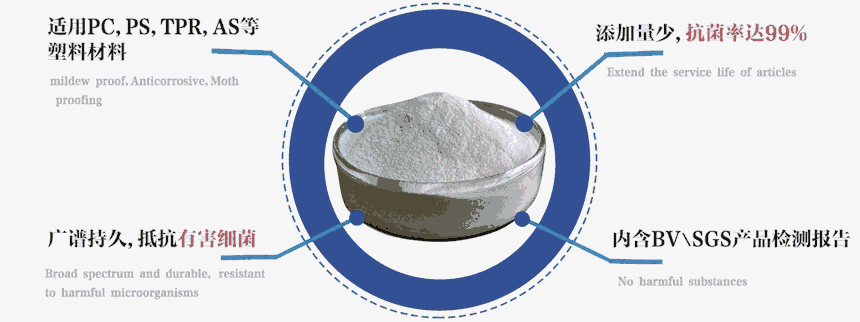 4.能永久地与高分子材料相结合,耐酸碱、不易产生细菌抗药性,灭菌效果持久。