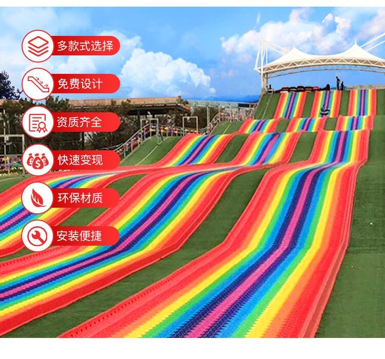 七彩滑道项目人为增设特色主题如:花海七彩滑道;不受场地限制,即使没有坡度,也可以用钢筋塑造一个人工滑坡