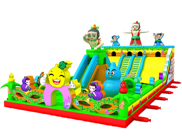 儿童充气城堡用加网PVC制成.此材料为一种专业的充气布,耐寒性好,可达零下40度低温;阻燃性好,离明火5秒内自熄,没有损害,我们使用的充气城堡材料为加网PVC布料,由技术监督局检测结果显示此充气城堡材料对皮肤无刺激性对儿童完全没有损害。