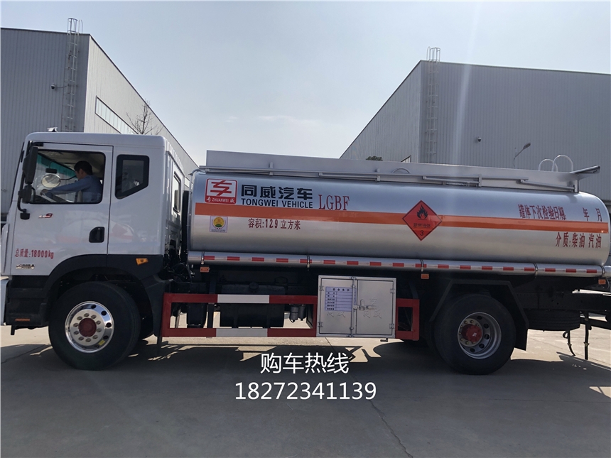 当然一台期间配置的大卡车,工具箱是少不了的,还有铝合金折叠护栏,罐尾一部爬梯,罐体两周分别贴一张反光板,一个防火帽,两根与罐体长度相当长的输油管,两个灭火器更是神助攻,罐体涂有防锈漆,一般用个3-5年不会生锈的,贴有3M国际大牌反光条,反光带,还有安全告示,三个依然液体标,让您上路更加的安全。