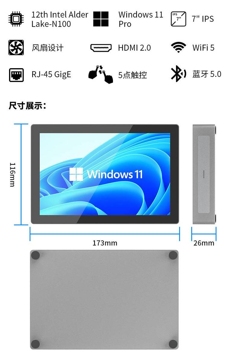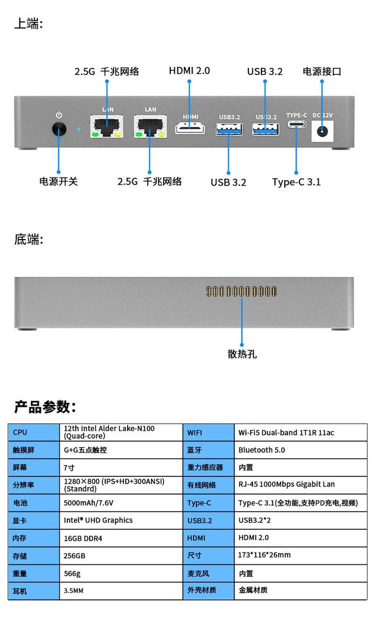 前海高乐F9B双网口7寸迷你电脑主机12代N100小型掌上平板4g插卡