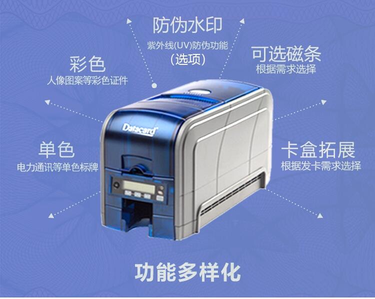Datacard SD160 TM证卡打印机是基于Datacard SD系列打印机成熟平台的又一款经济、***证卡打印机,以迎合***的市场应用需求。该品采用稳定的DTC热升华直印打印技术为您呈现***、全彩色或单色照片、图形和文本。其***的磁条编码一体化功能、UV紫外线防伪打印功能和直观的操作界面,使得SD160证卡打印机成为保护证卡安全和项目简单操作性的解决方案。