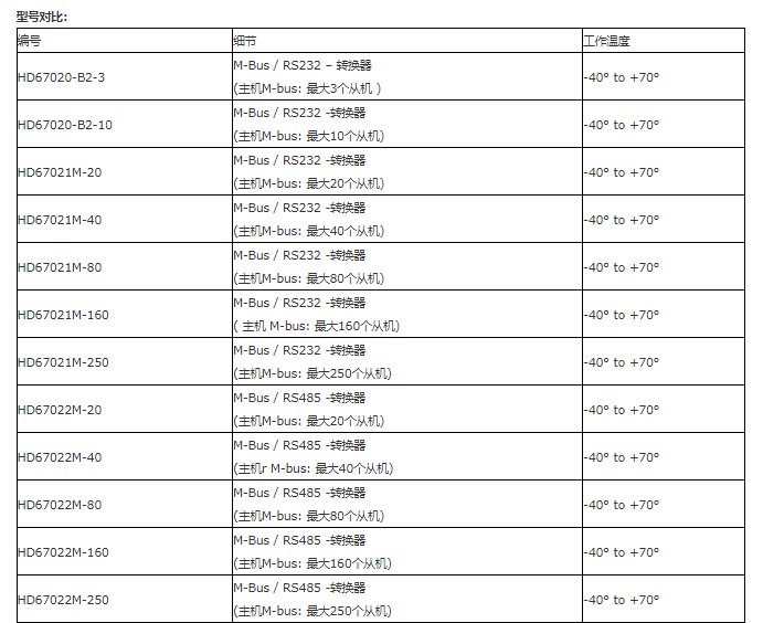 HD67021M-20 | M-Bus / RS232 -转换器 (主机M-bus | 最大20个从机) | |