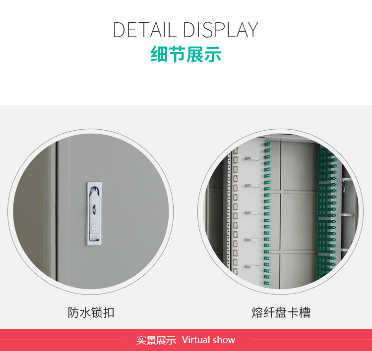 2.2 Modular design; The integrated fusion tray inside this device is a drawer type structure, which is simple and convenient. The installation of the adapter angle ensures the optimal bending radius of the optical fiber and low transmission attenuation. And can provide various accessories to protect the optical cable from accidental strain.