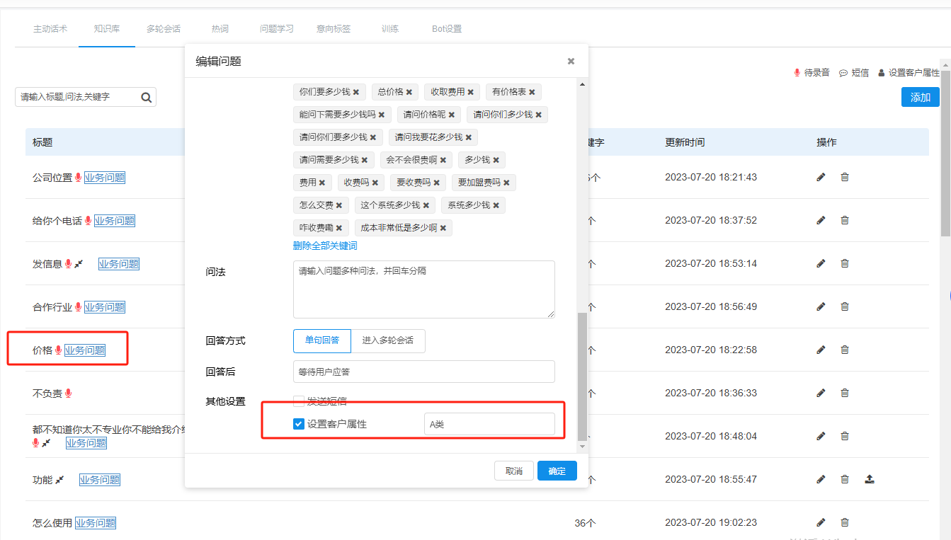 5. 话术权限给到客户,可以自己根据需求调整优化