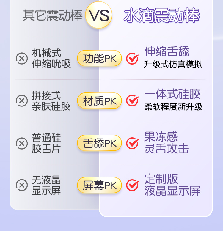 功能对比 | 其它震动棒VS水滴震动棒 | ||
