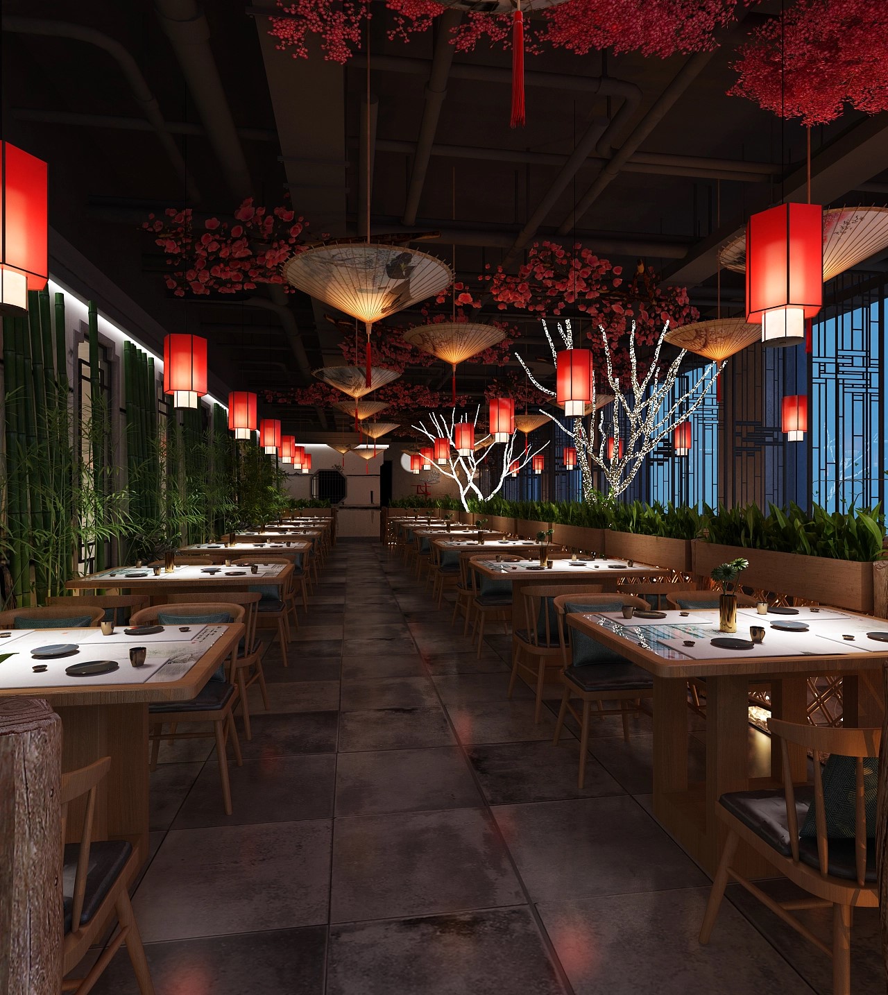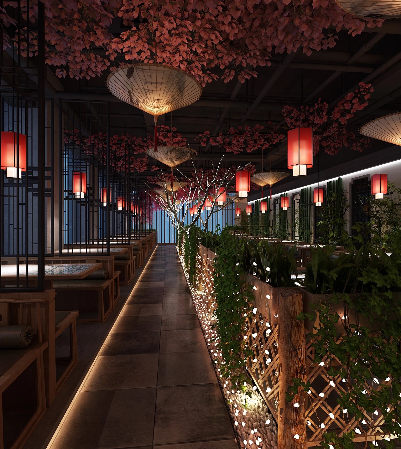 材质运用:中餐厅的装修材质应该以自然材质为主,如木材、石材、竹子等,这些材质可以营造出自然、质朴的感觉。同时,也可以运用一些现代材质,如玻璃、金属等,来增强空间的现代感。