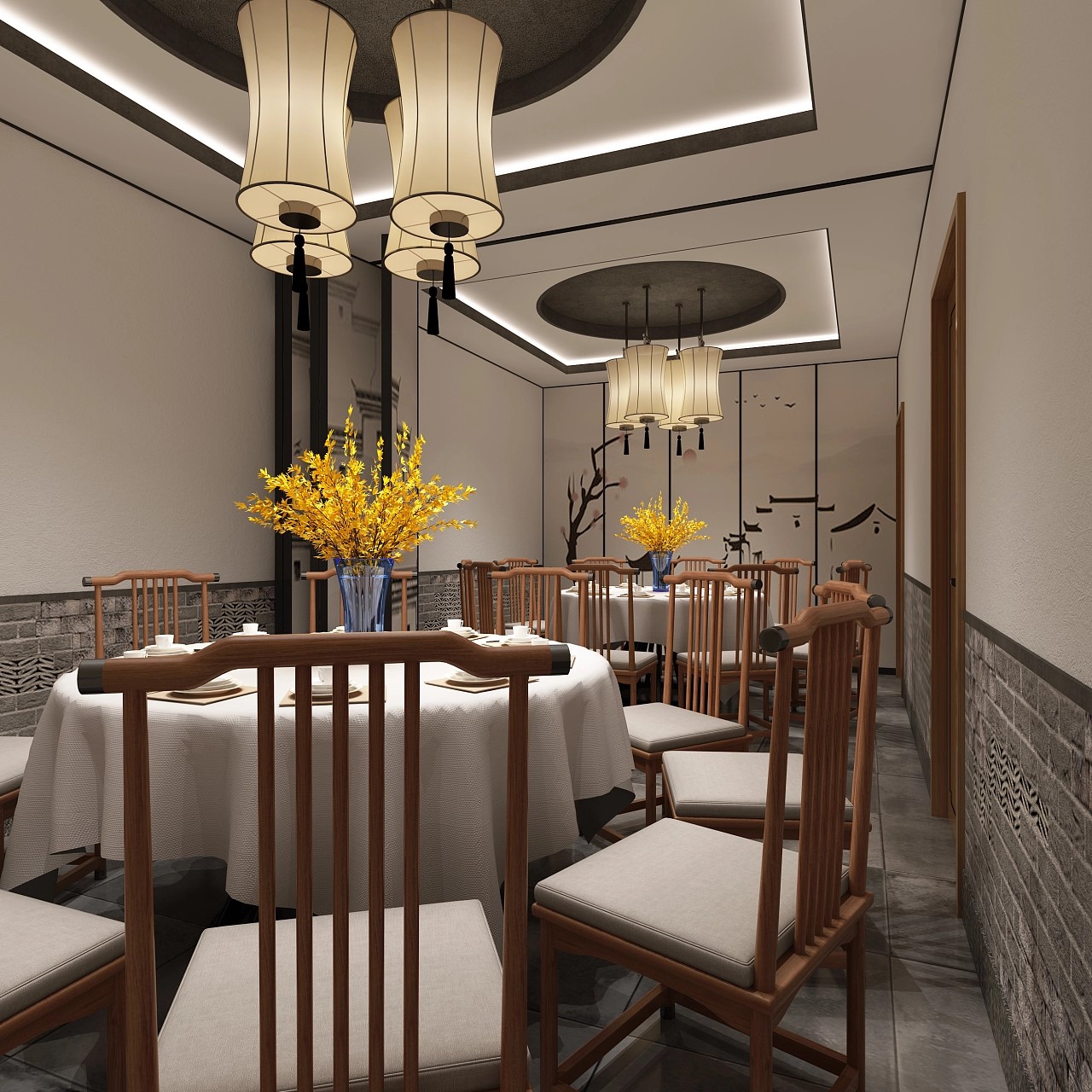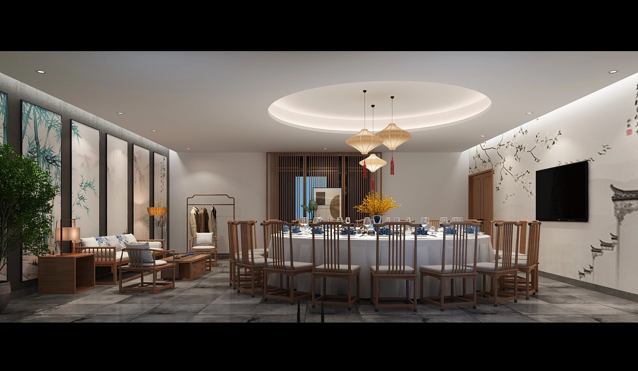 装饰元素:中餐厅的装饰元素应该以传统文化和艺术为主,如传统画、书法、陶瓷、造景等。这些元素可以营造出浓郁的文化氛围,让顾客在用餐的同时感受到传统文化的魅力。