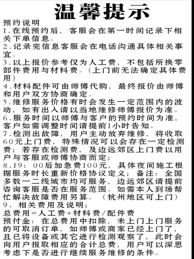 商铺名称:杭州余杭电路水路家电综合维修服务部