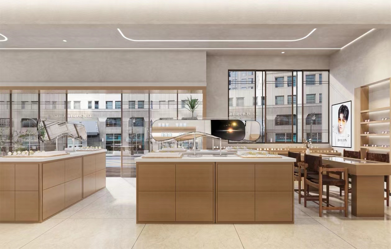 空间布局:需要合理规划空间布局,确保顾客可以方便地在店内移动和选择眼镜。收银台、验光区、展示区、试戴区等区域应该明确划分,并保持通畅的通道。