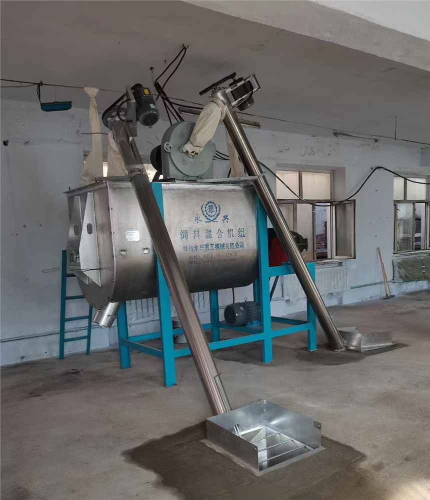 郑州永兴牌304不锈钢卧式搅拌机配套螺旋输送机,耐腐蚀,搅拌时间段,均匀度好。 日常要做好饲料搅拌机的日常维护保养,采用经济可靠的低噪音、无污染的原辅材料,经常对搅拌机进行保养,促进饲料堆料材料的干燥更新。尤其是配料喂养的饲料中添加极少量的和高分子微生物。此外,要想获得好的饲料可以在将来的营养方面下工夫。
