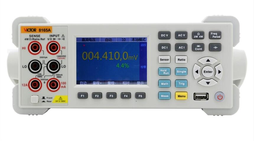 显示采用3.5英寸彩屏(分辨率320480),台式万用表VICTOR 8165A高精度六位半万用表显示内容丰富,可灵活显示各种图形界面,具有良好的显示效果。根据您的需求定制显示界面,支持图形、数字、数学等功能同时显示于界面上。