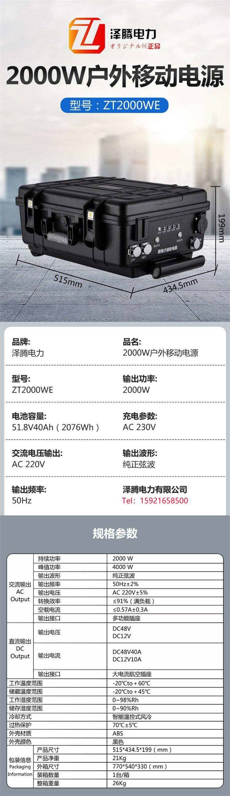 泽腾电力 2000W 户外电源 旅行