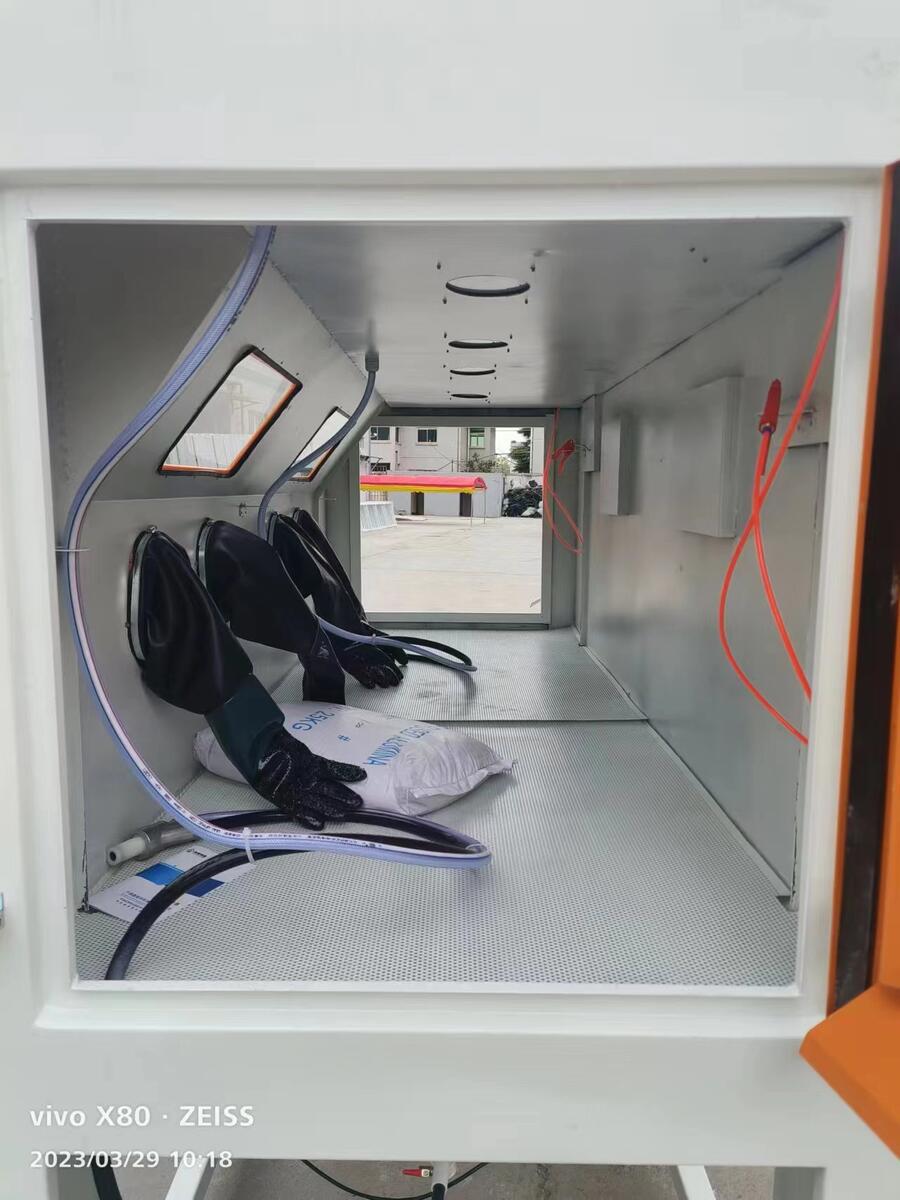 喷砂机适用行业:A.压缩空气机流量不够压力太低 换流量大的空压机(标准每把枪1m3/min)调高压力。B.喷嘴及气嘴太小 更换较大的喷嘴及气嘴。 C.所用磨料损耗粉尘太多 排除旧磨料,再装入新磨料。D.喷嘴磨损太大 更换新的喷嘴。