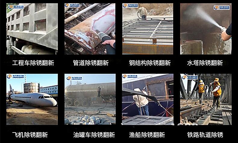 喷砂机由砂罐、砂阀、喷砂管、喷砂枪等部分组成。是以压缩空气为动力,将磨料(砂、铁砂、铜矿砂等)喷射到需要处理的工作表面的设备。压缩空气将磨料从沙罐中压出,经过砂阀和喷砂管到喷枪,磨料以大于200米/秒的速度喷出,由于末了对物体表面的冲击和切削 完成金属表面除锈、去氧化皮、旧漆皮和污垢的作用,并获得一定的清洁度和粗糙度 ,可达sa2.5-sa3.0的标准。对压缩空气压力磨料目数的调整变化,也可以用于建筑物,道路除垢、混凝土除垢、玻璃毛化等方面。