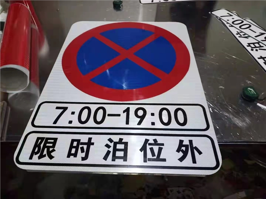 材质特点:1.00-3.00mm铝板厚度,背面安装铝槽(供固定时使用),正面贴反光膜。夜晚反光效果。