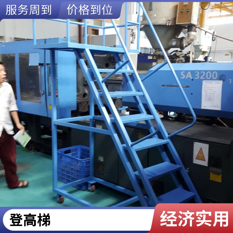 上料梯说明:1、采用优质钢材制造,经酸洗,除锈,磷化处理,静电喷粉,烤漆等处理过程。配以优质脚轮:两只固定轮、两只活动刹车轮,既可以灵活移动,又可以安全固定。2、踏板与平台表面采用花纹钢格板